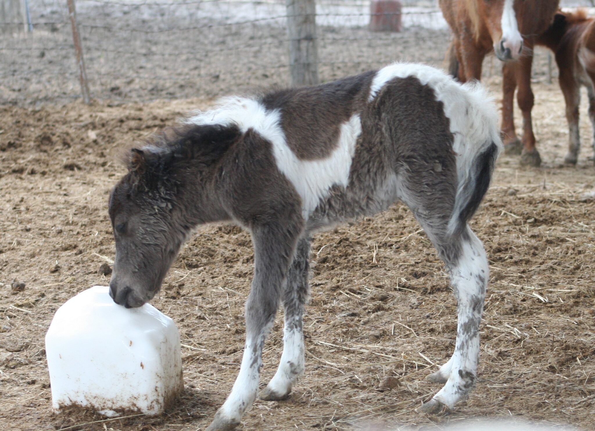Here is another colt that has “show me” all over him. With many ancestors being World Champions in both driving and halter, he may be an addition to our growing show string. He is TOTO, homozygous for the pinto gene, meaning that all his foals should be pinto. We are considering his older fu;; brother for a future herd sire to breed our PQ and BoleroDream daughters.