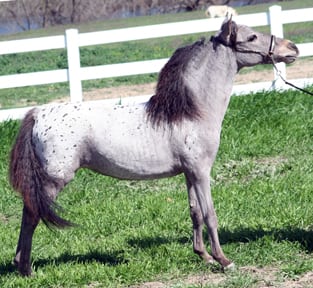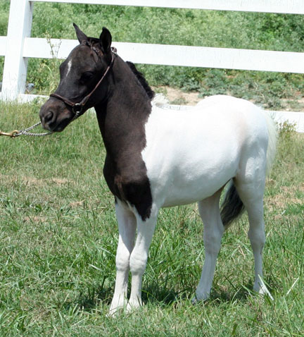 This pretty mare is a daughter of Reserve World Champion Multi-Color Champion sire and AMHA Honor Roll Champion dam. Hopefully, she will be able to follow in the footsteps of her family and be an outstanding brood mare.