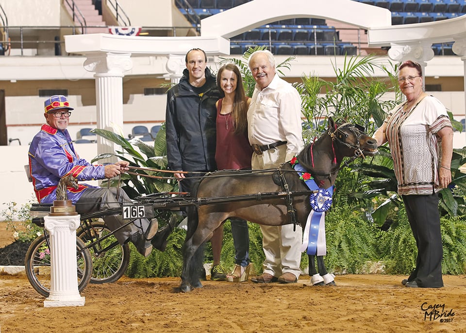 Also, developing a winning history in the show ring can increase a miniature’s value. The highest titles awarded at the American Miniature Horse Association’s World Championship Show each year are the “World Grand Champion” titles. These are given for halter stallions, geldings, and mares at both junior and senior levels, and for each of the driving divisions.